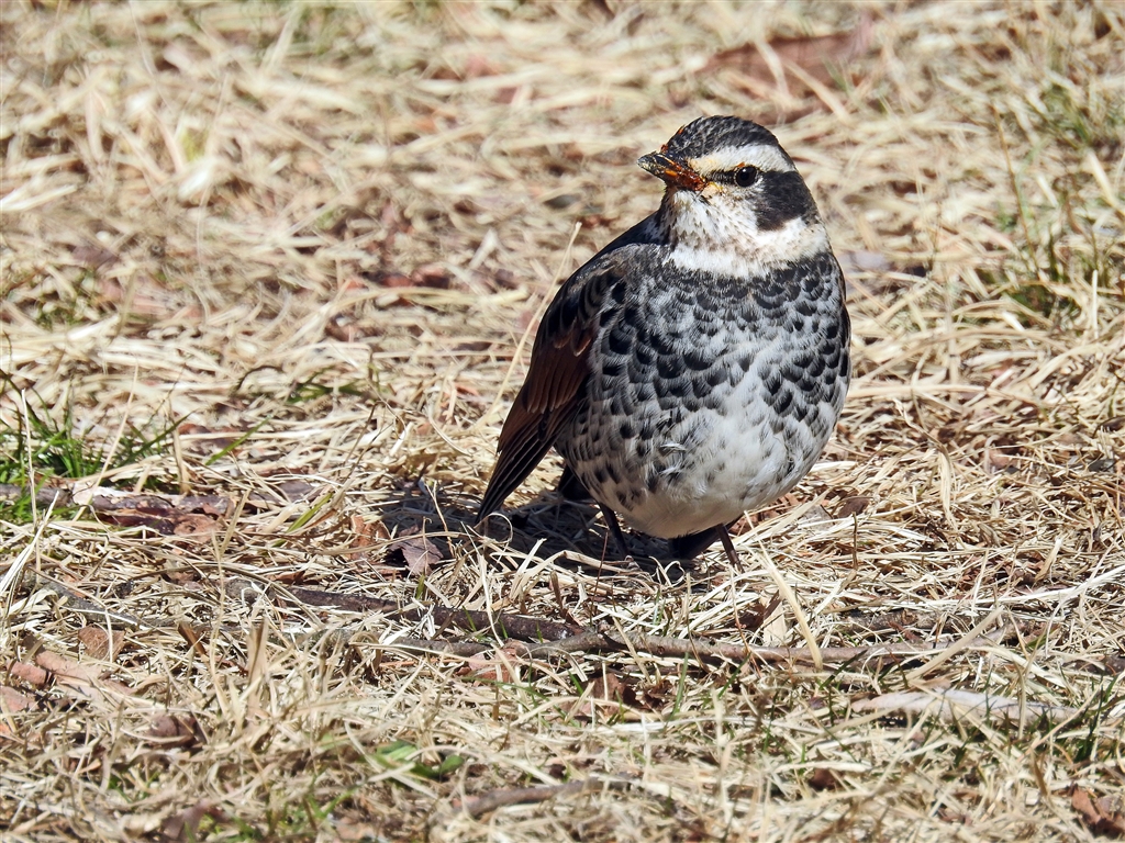 こいつ、また柿食べてたな、アップで見たら顔や嘴に柿の跡、ツグミ。 換算1400o