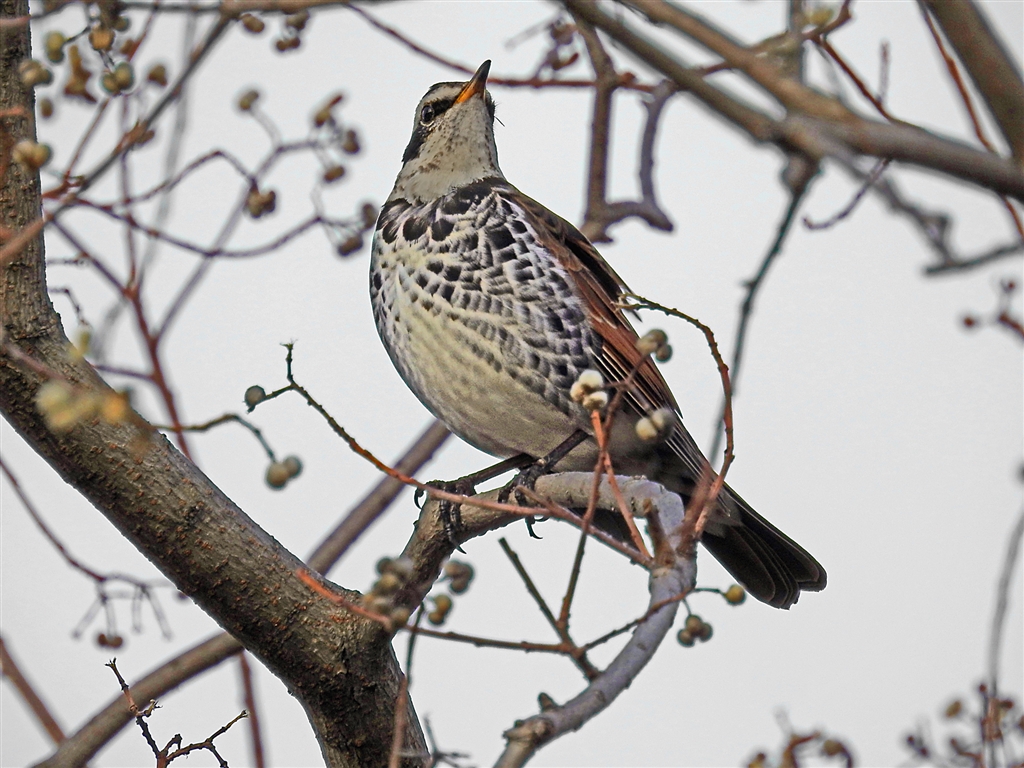 実だけ残ったナンキンバゼの木にツグミの雄姿? 換算1400o