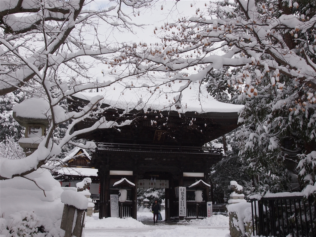 日牟禮八幡宮の楼門前にて…雪が多い。