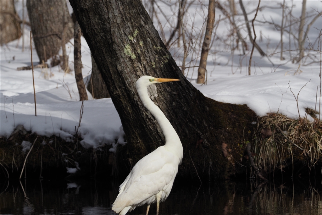 何かに驚いたような仕草のダイサギ