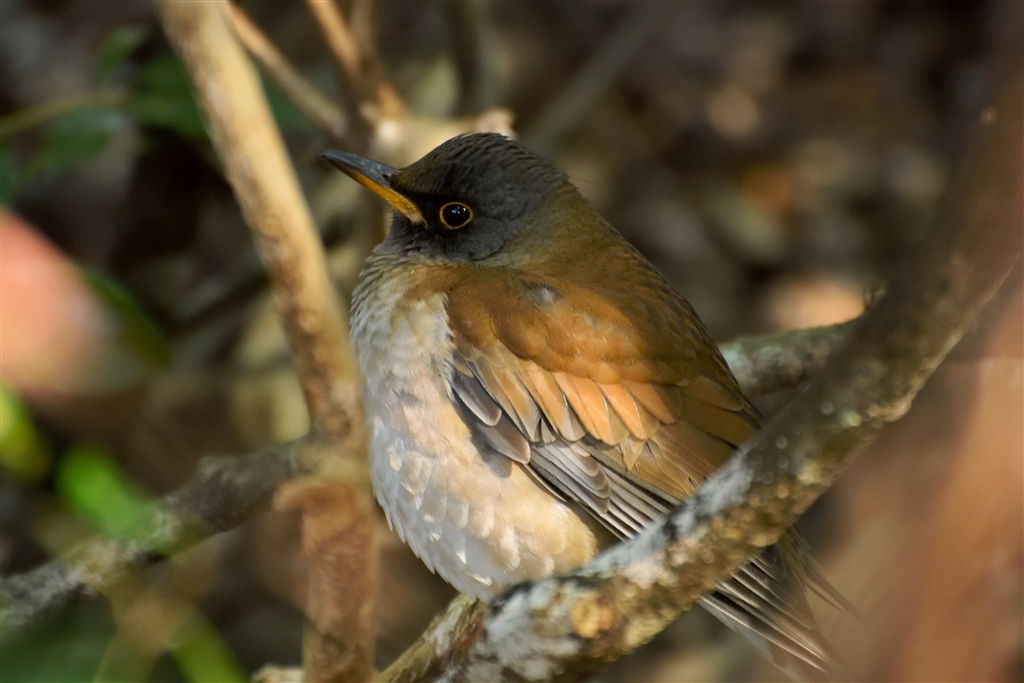 シロハラはカサコソ音を立てながら地面で餌を探していた