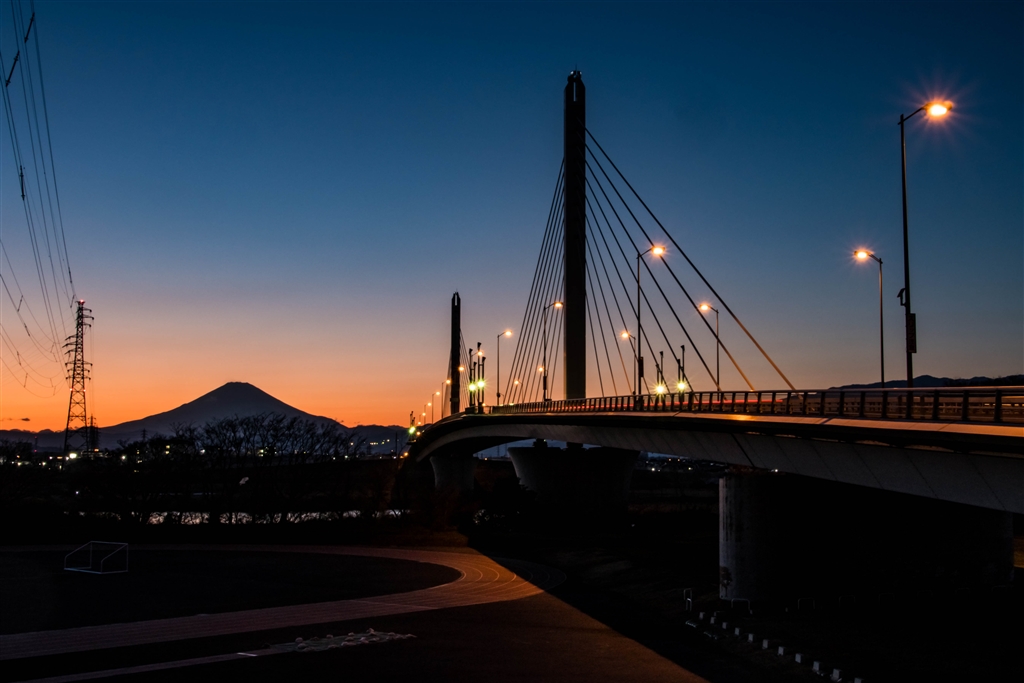 黄昏のシルエット富士