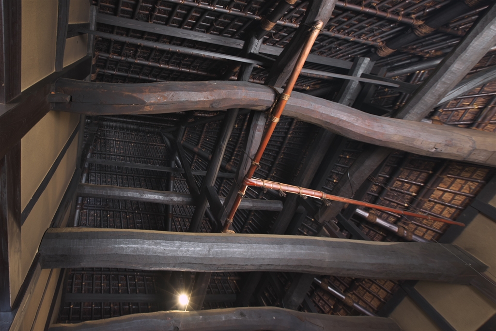 豪農の屋敷2)茅葺屋根の裏側