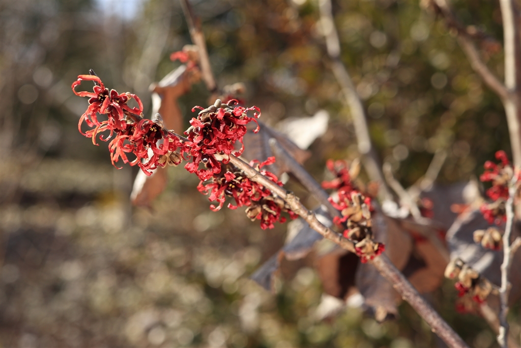 アカマンサク。(下から補光)