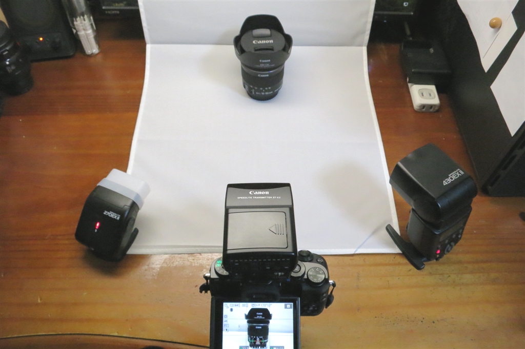 制御器+ストロボ2台で左右の光量比を変化させながら発光できます。