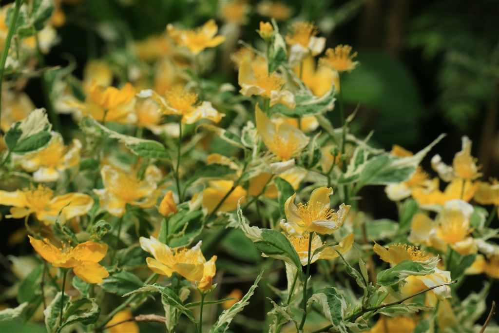 庭では山吹が満開です(ヒトエで斑入りの園芸種)