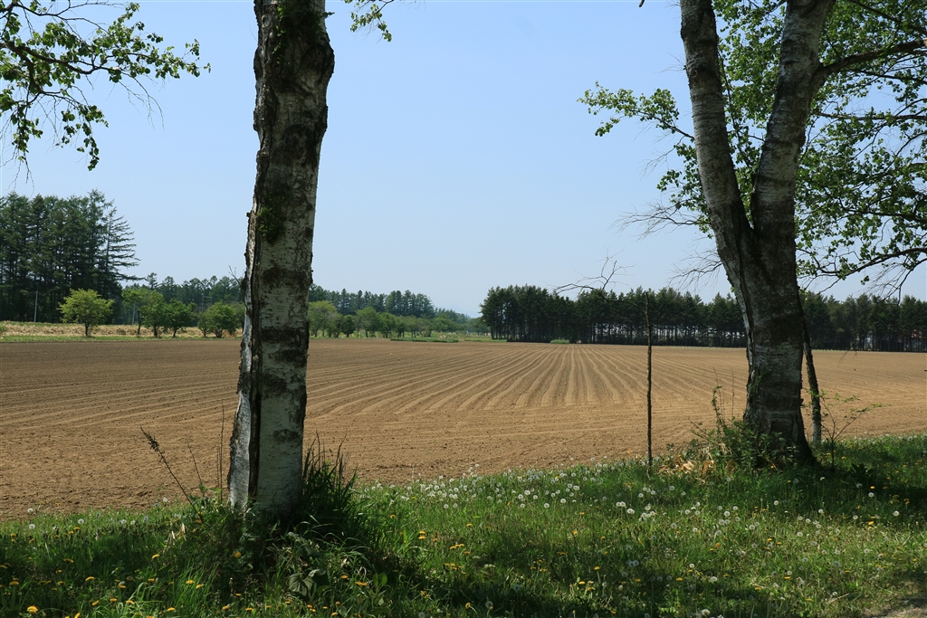 畑はまだ春の様子(たぶんじゃが芋畑)ですが・・