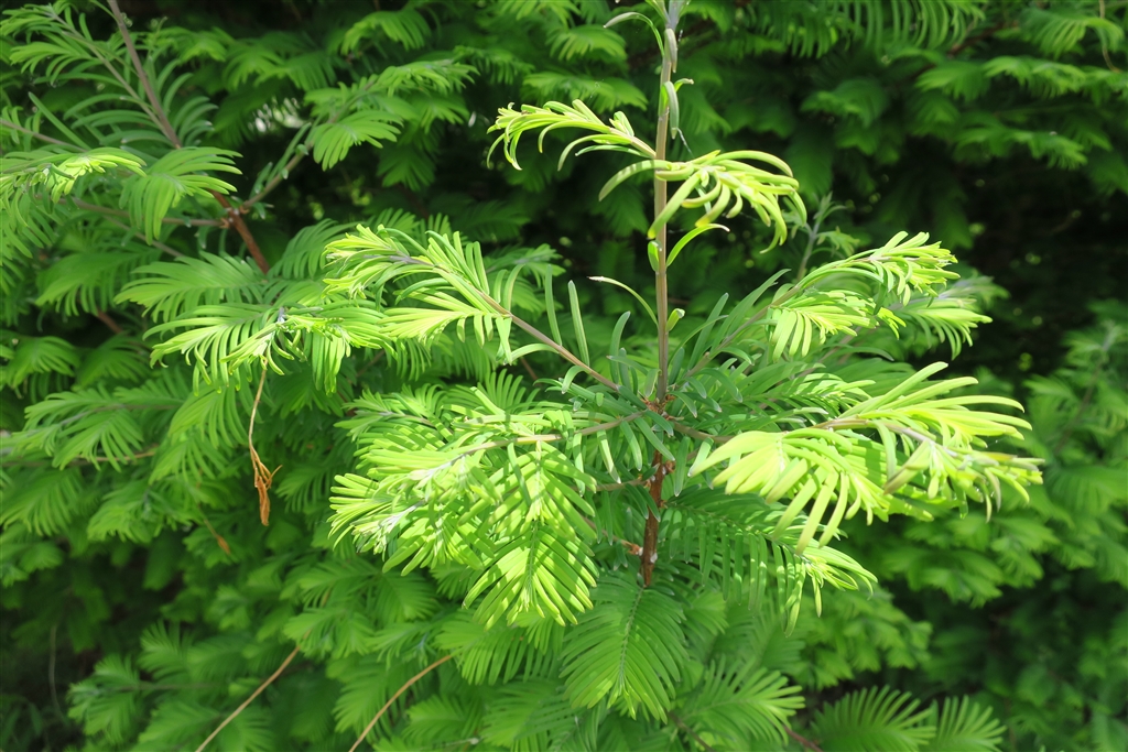 この時期の若い葉色。たぶん、落葉針葉樹だと思うのですが