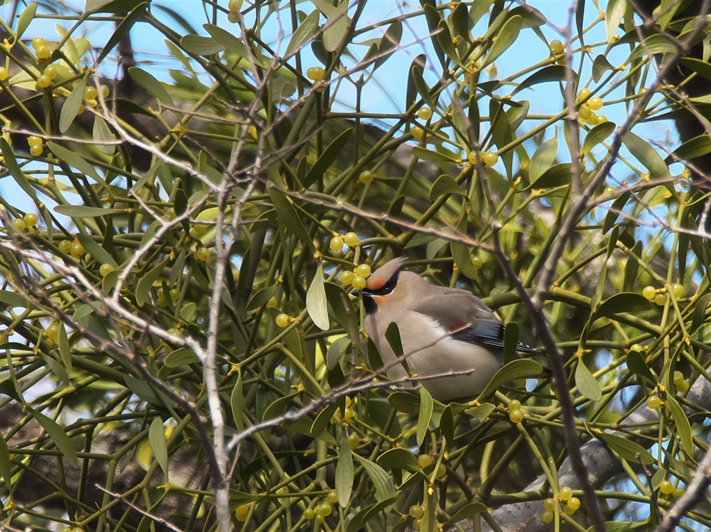 ヤドリギの実を食べるヒレンジャク