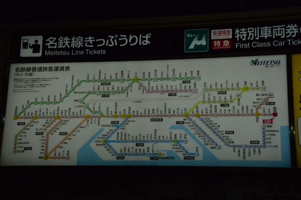 乗換出札の運賃表