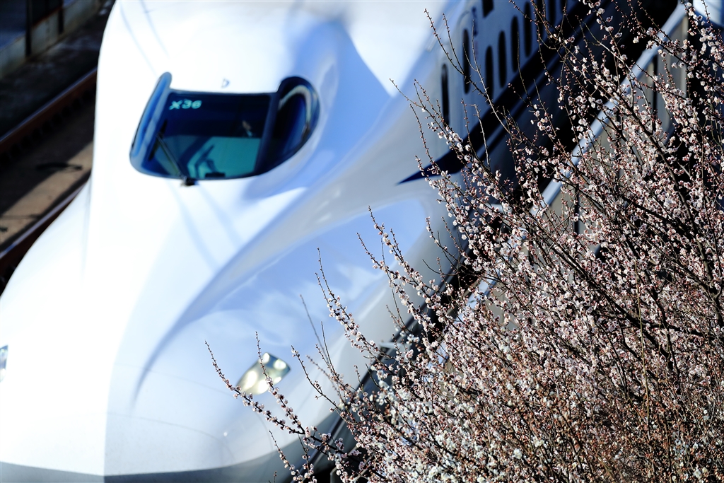梅の花と去るのぞみ