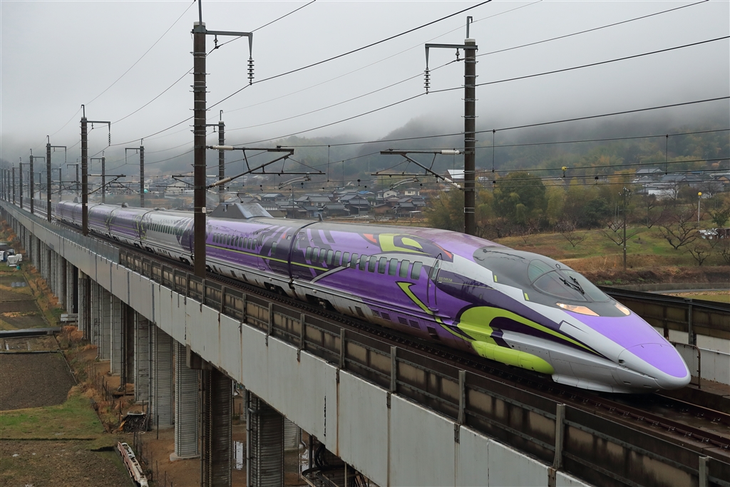 止みそうな雨の中の500系こだま