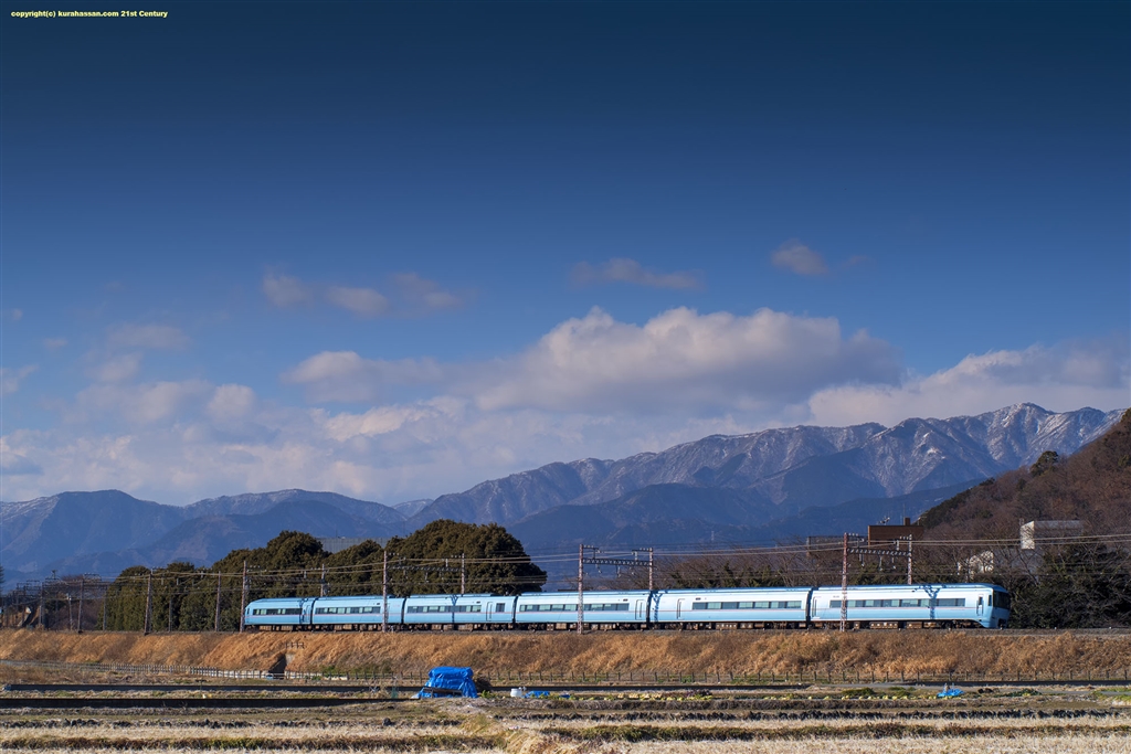 青空に青い車両、青いシートはご愛敬。