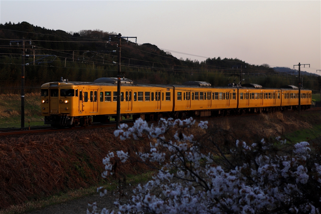 桜と115系