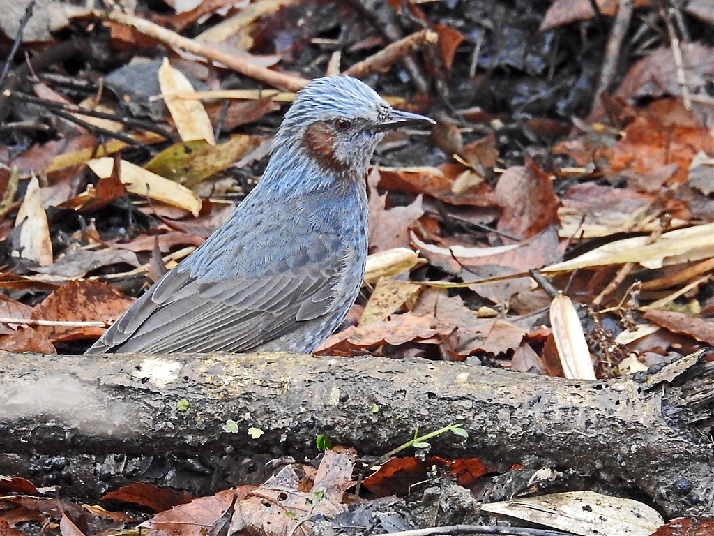 珍しく枝から湿地に降りてきた灰青色のヒヨドリ。 換算800o