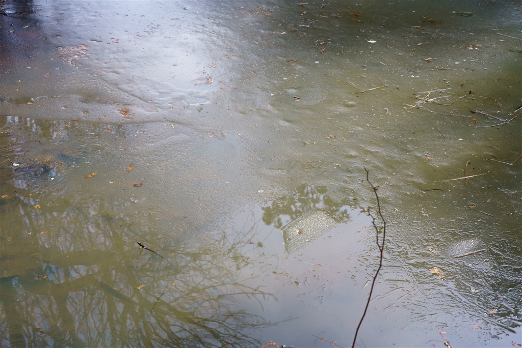 池の厚い氷も緩み始めました(^^♪