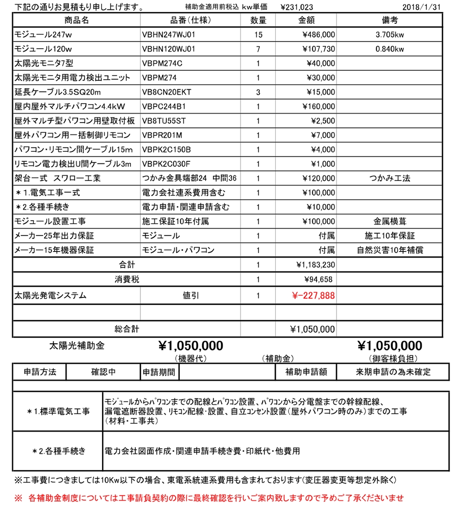 『業者A パナ見積』 太陽光発電 なんでも掲示板 bulldogs465さんのクチコミ掲示板画像1/4