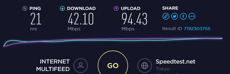 速度測定の結果(2018/4/2 21:51, transix, 大分市)