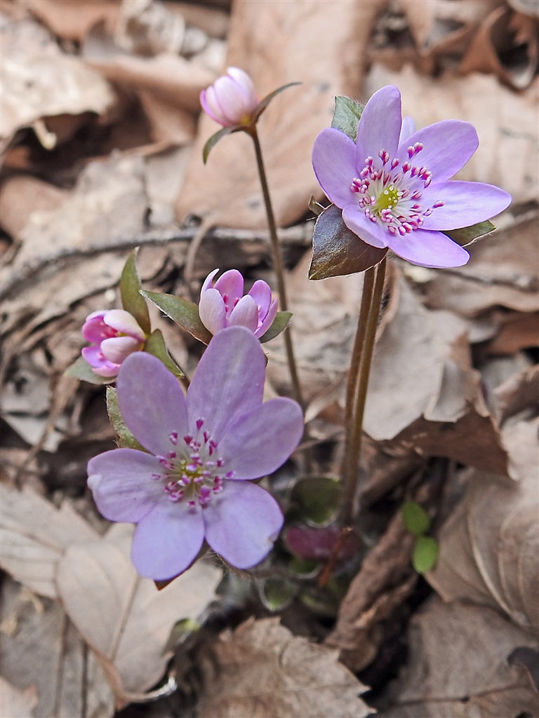 また覗いてきたが、花が随分と開き葉も見えてきたミスミソウ=雪割草