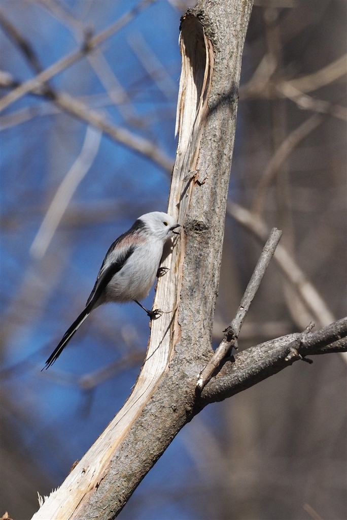 幹を囓る?シマエナガ(樹液出る?)