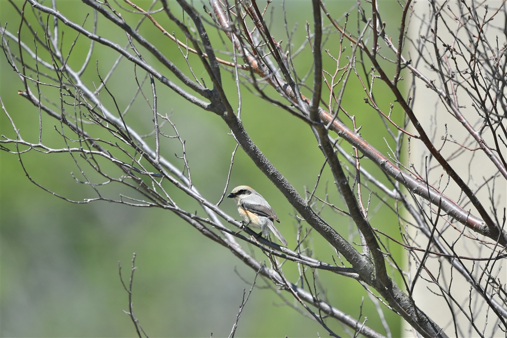 小さな猛禽 モズ君が学校のグランドに