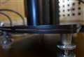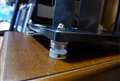 写真1、スピーカーとスタンドの間に2mmのコルクをいれて締りを良くしました。