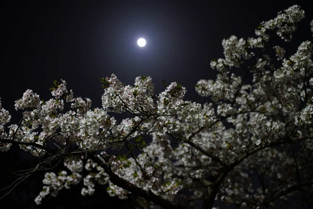 夜桜と月