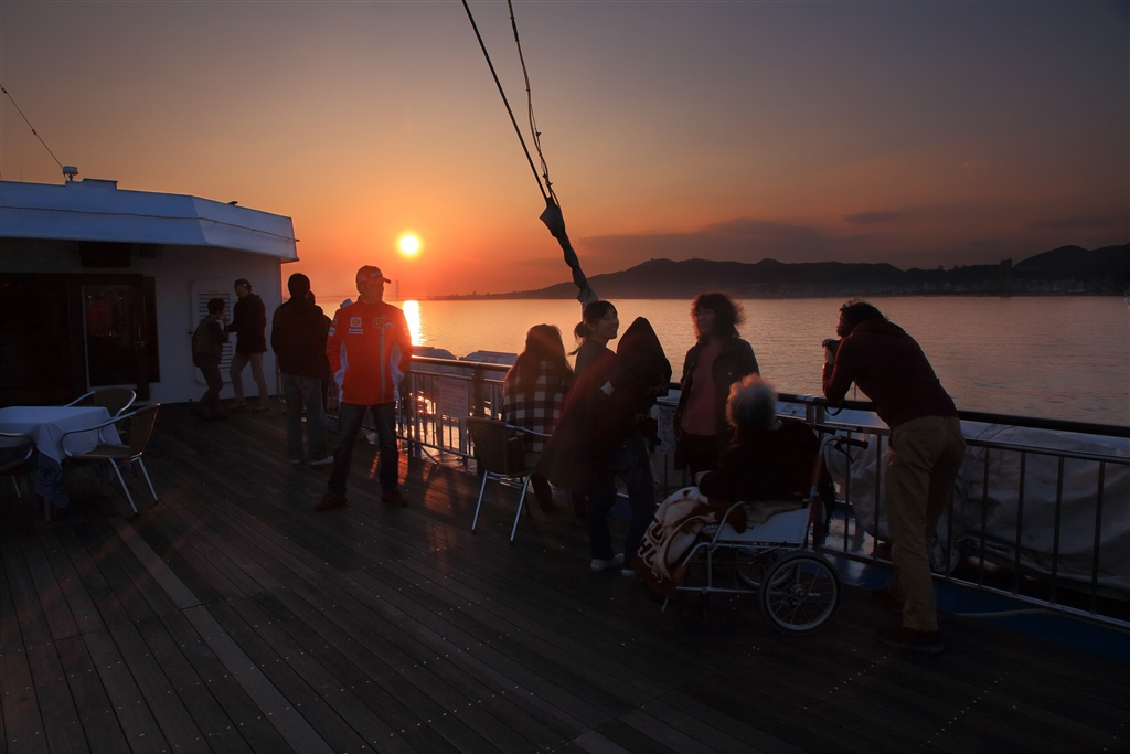コンチェルト号から思い思いに夕陽を眺める
