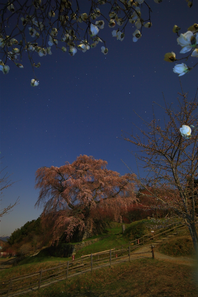 未明の又兵衛桜(近くに白いモクレンが咲いていました)