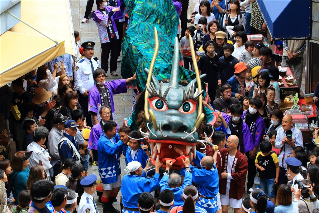 道成寺の参道では出店と地元の人でいっぱいの中を通る