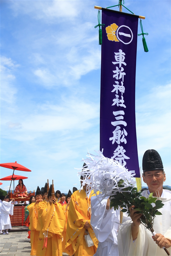 大堰川へ向かう車折神社の参進行列