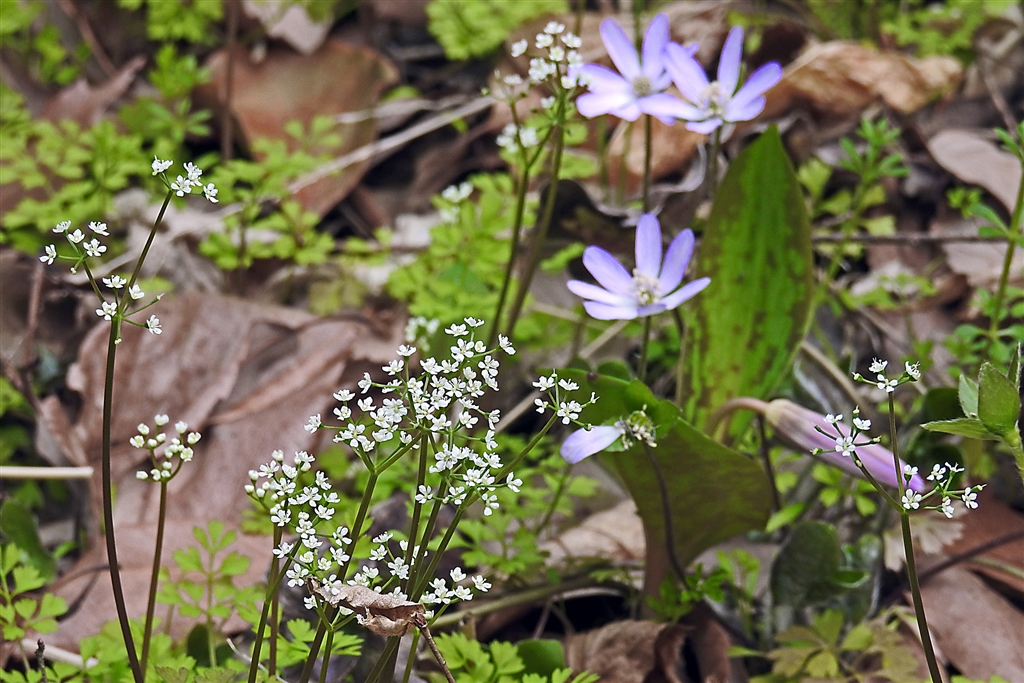 写真のようにこの里山の群落は、セントウソウとミスミソウとカタクリが入り混じる
