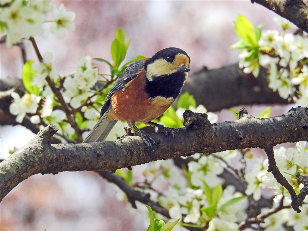 ヤマガラとカンザキオオシマ(寒咲き大島) カンザキオオシマは大島桜の園芸種