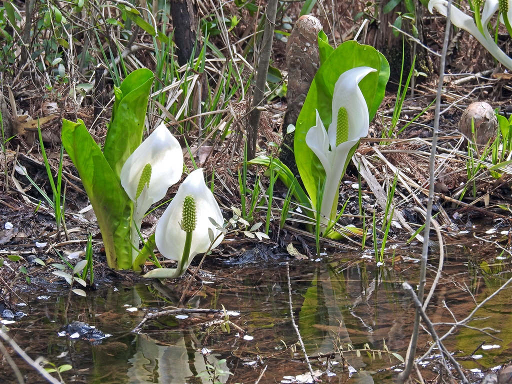 ミズバショウ(水芭蕉)咲く湧水湿地は、里山2ツに大群落とまだ小群落が1カ所づつある
