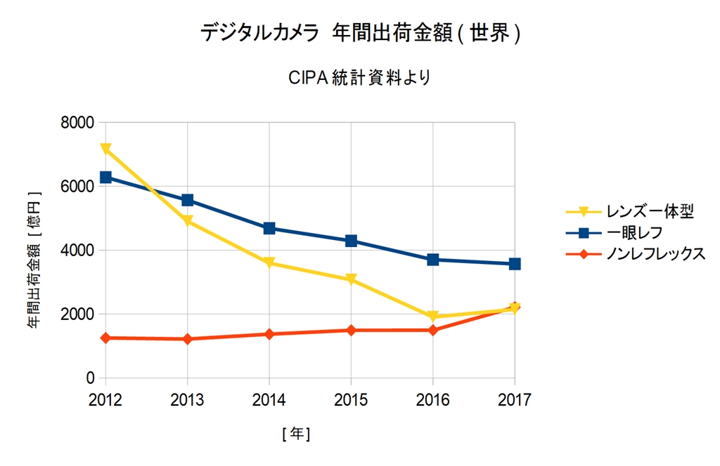 『年間出荷金額(世界) (2012〜2017年)』 デジタル一眼カメラすべて ミスター・スコップさんのクチコミ掲示板画像3/4