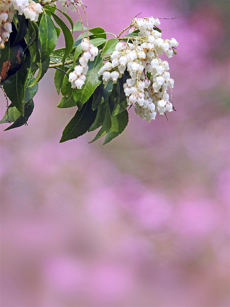 コバノミツバツツジのピンクにアセビ・ホワイト