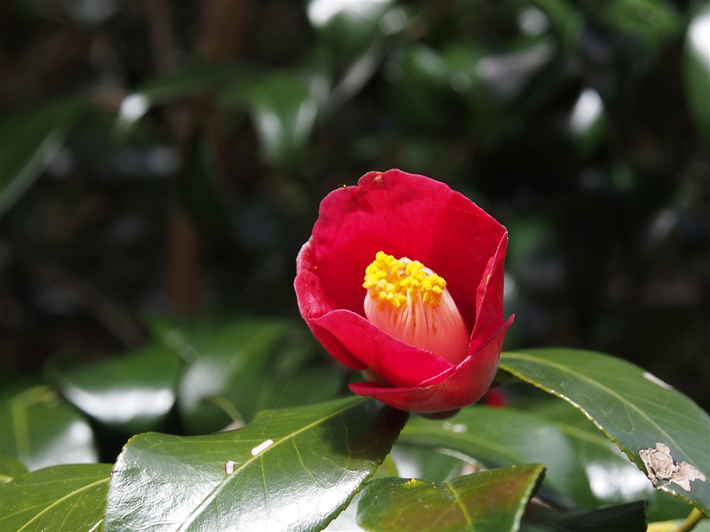 陽を浴びるヤブツバキ。