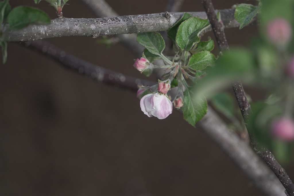 田舎の畑に植えたリンゴ(フジ)、3年目で花が咲き始めましたがこれからが大変です