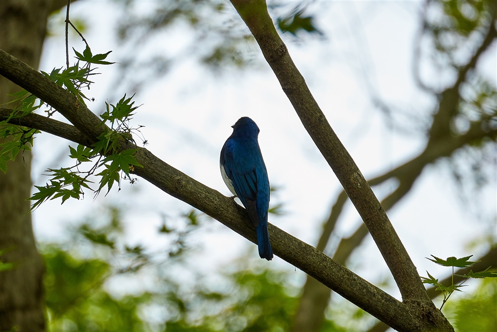 低い枝に留まってくれていたオオルリ