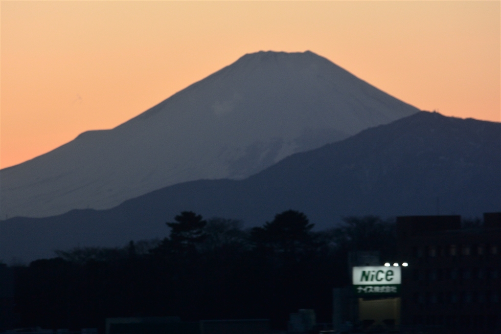 夕闇の富士山首都高 より走行中