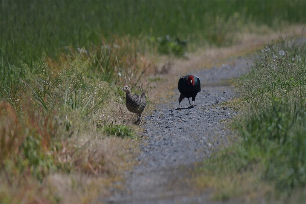 相変わらず気ままにふるまう自由な♀と心配そうに後を追う♂のカップル
