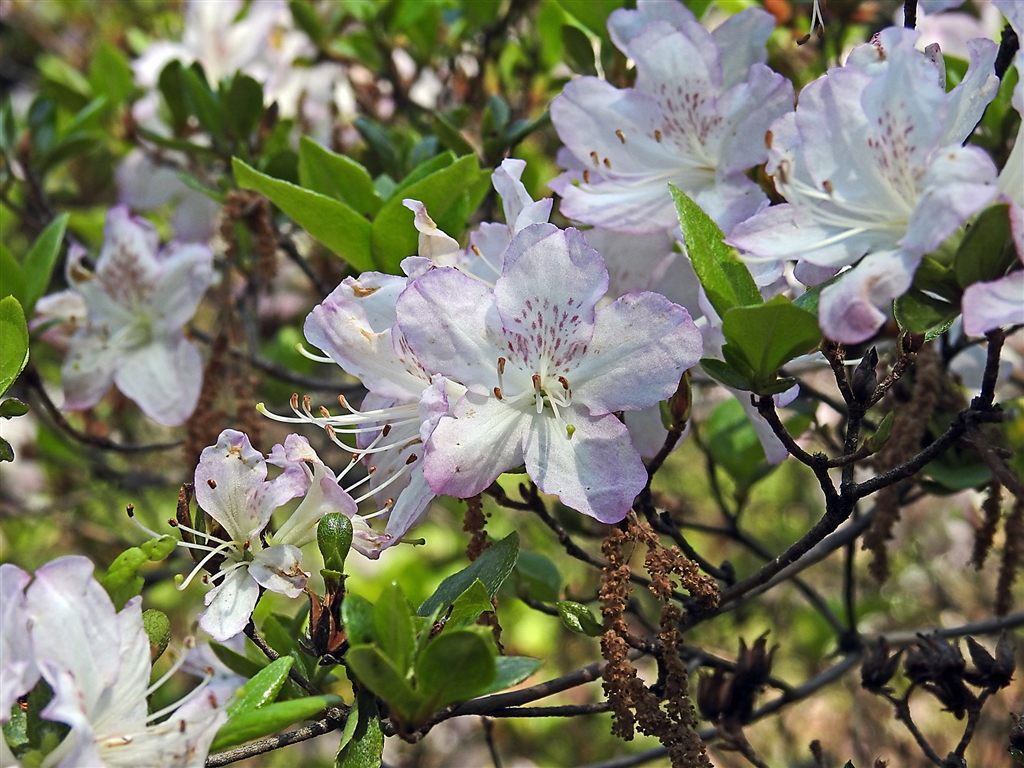 花弁の縁に薄紅色を残し、上部花弁に薄紅の斑点を付けたシロバナウンゼン(白花雲仙)