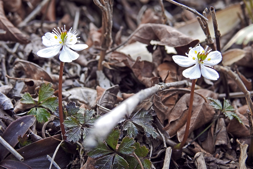 →花弁に見えるは萼。本当の花は中心の黄緑部分。梅の花に似る。漢方薬原料〈鎌ヶ岳〉