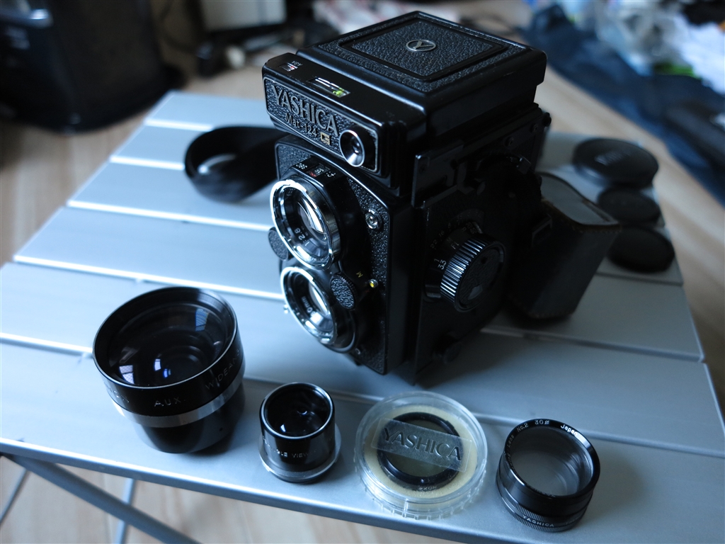 ヤシカ二眼レフアクセサリー(左2つがワイコン)
