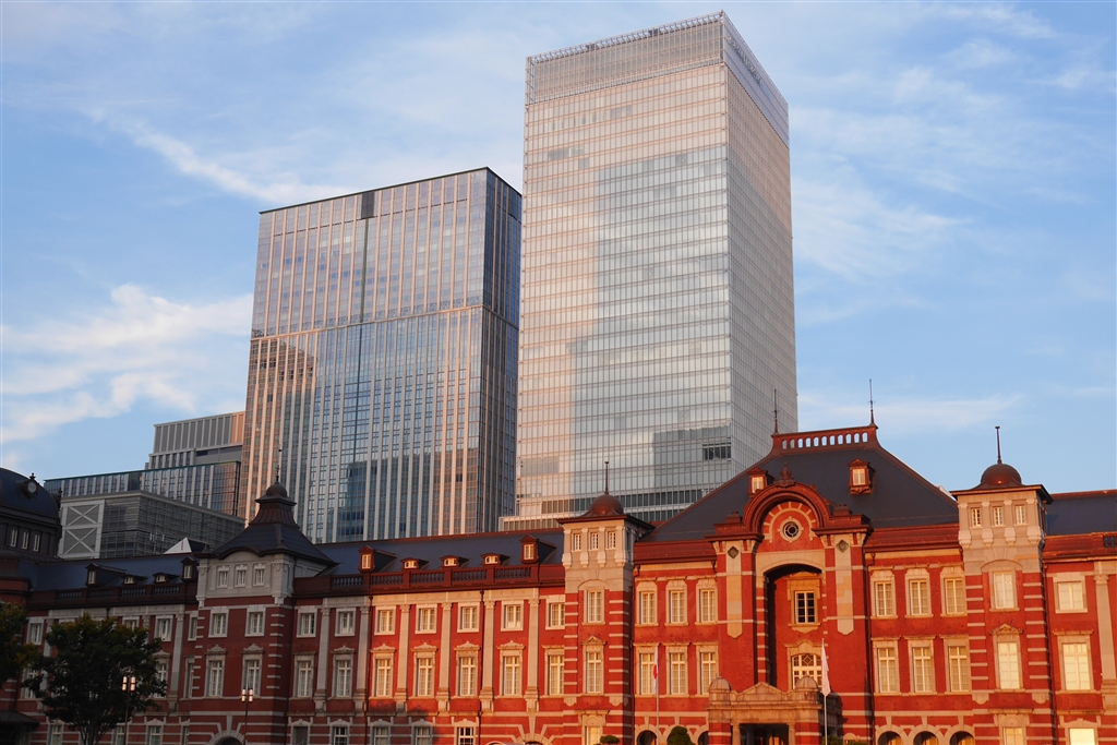 夕日に映える東京駅、人影を除くトリミングをしています
