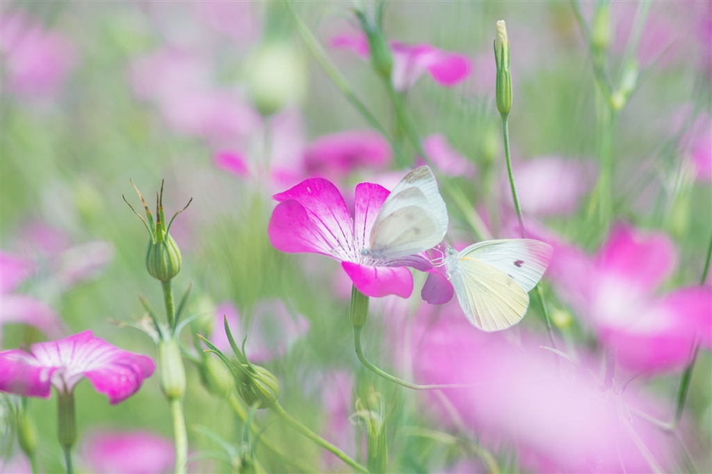 麦なでしこにモンシロチョウが戯れていました