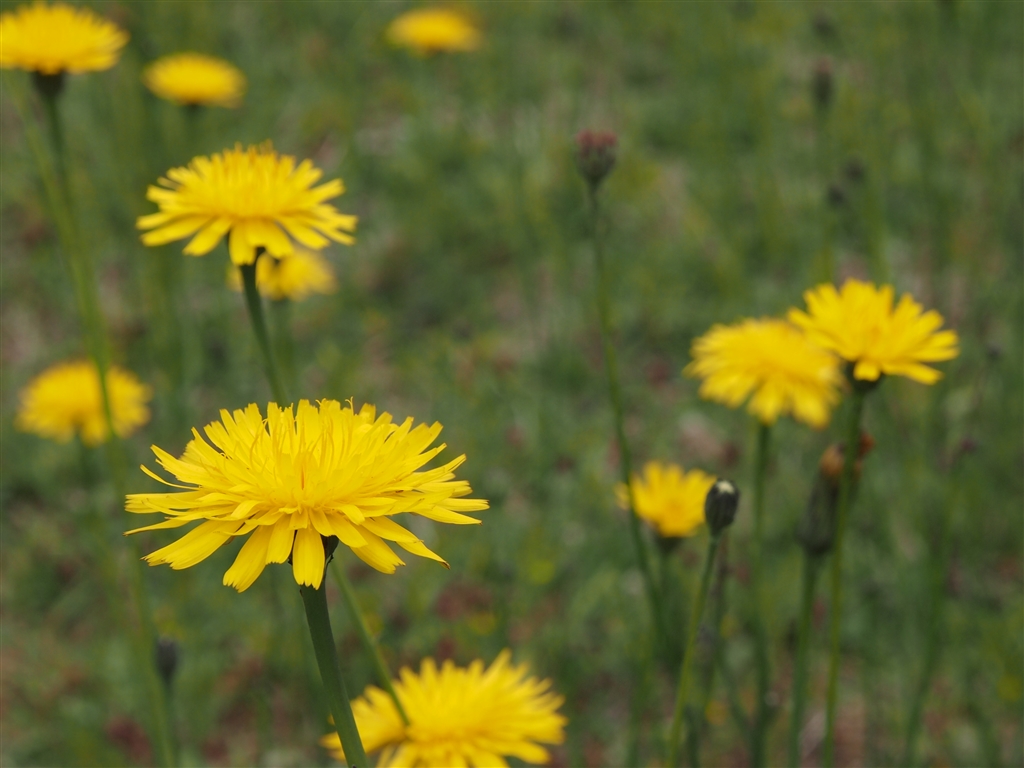 住宅地近くの公園に咲くブタナ。