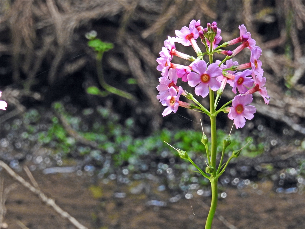 ニホンサクラソウ。林間の湿地に自生。この里山では獣や盗掘からよく護られ今や小群落