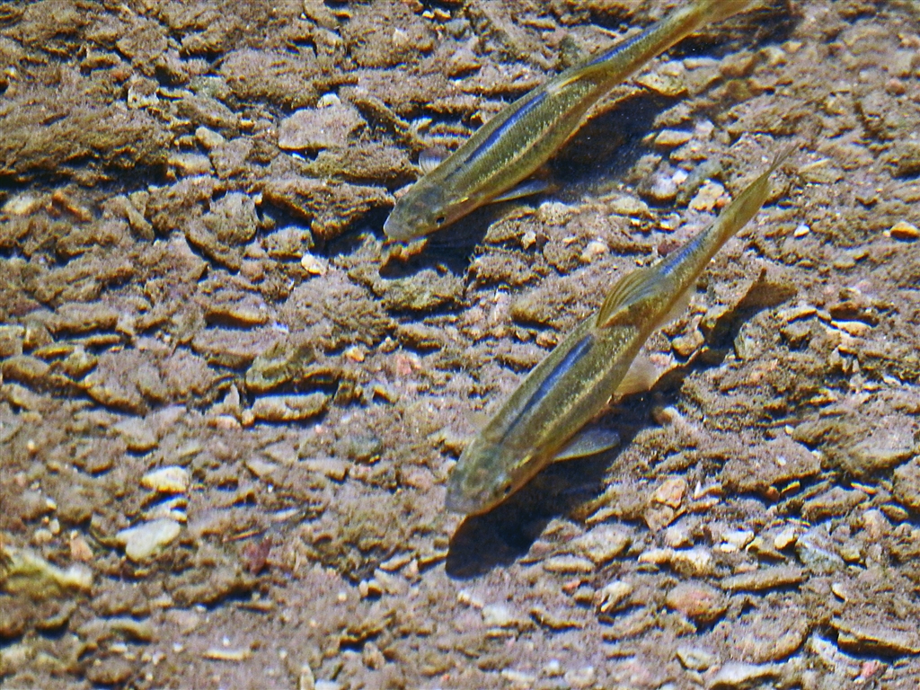 この沢の最上流の浅瀬にアブラハヤ?タカハヤ?の群れがしきりに川床をつついていた