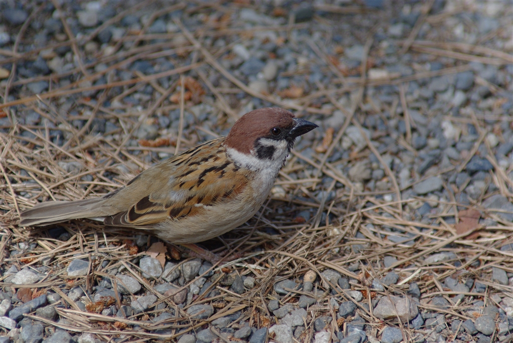 京都御苑にて…暑くて木陰で休憩中に寄って来た雀。
